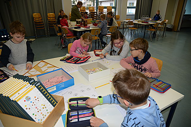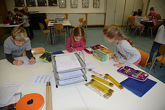 Arbeit an Stationen in der Mathematikwoche: