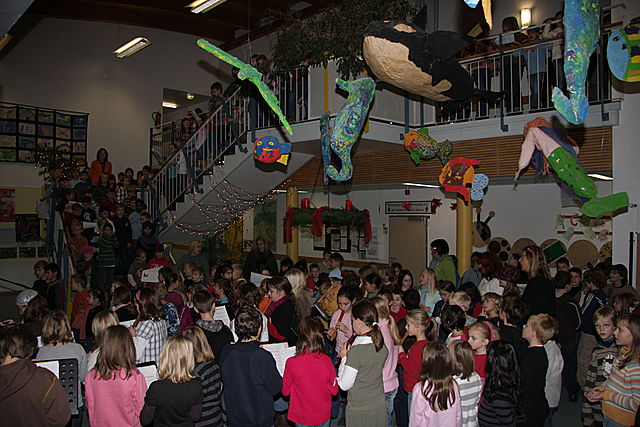 Adventssingen mit allen Klassen zum Auftakt der Wochen im Advent: