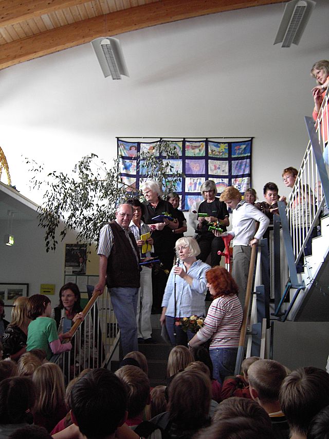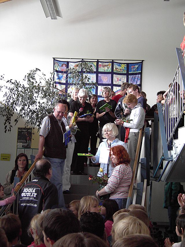 Am Freitag den 13.06.2008 waren dann die Kinder, Eltern und alle anderen Interessierten herzlich eingeladen, von 14.30 Uhr bis 16.30 Uhr die Arbeitsergebnisse zu bestaunen, die auf dem gesamten Schulgelände präsentiert wurden. Die Zeit der Präsentation reichte kaum aus, um alle Arbeiten und Darbietungen in Ruhe zu bestaunen. Die Eltern sorgten mit Muffins und Brezeln für den kulinarische Höhepunkt.