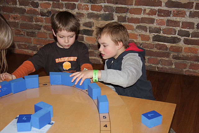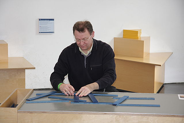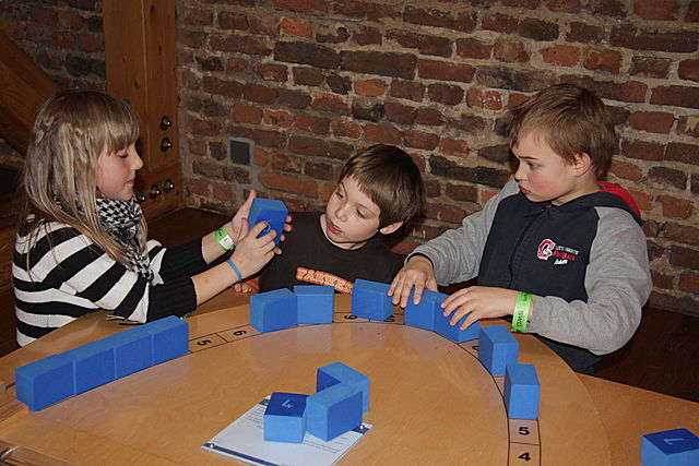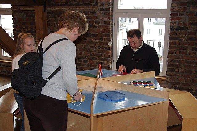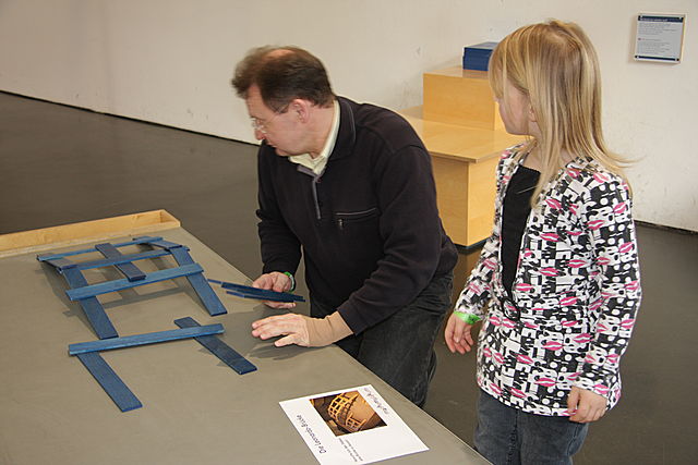Die Mathematik begeistert groß und klein - hier beim Nachbau der Leonardo-Brücke!