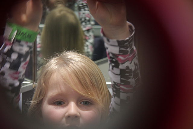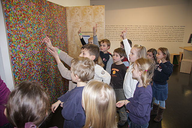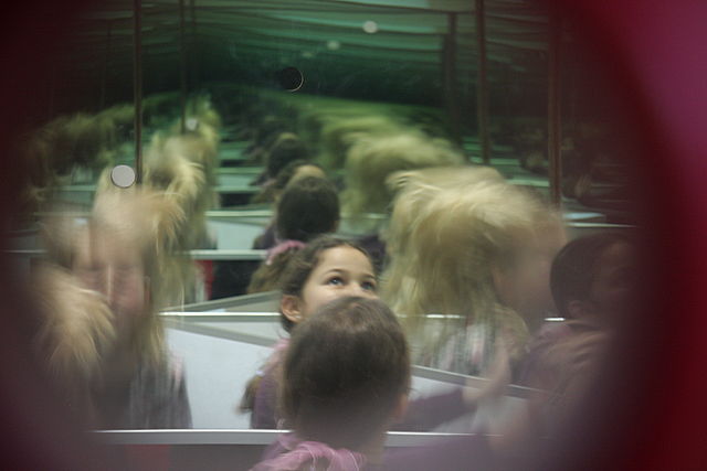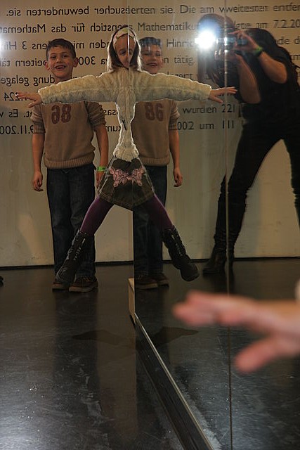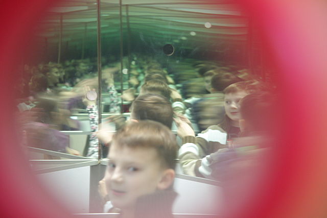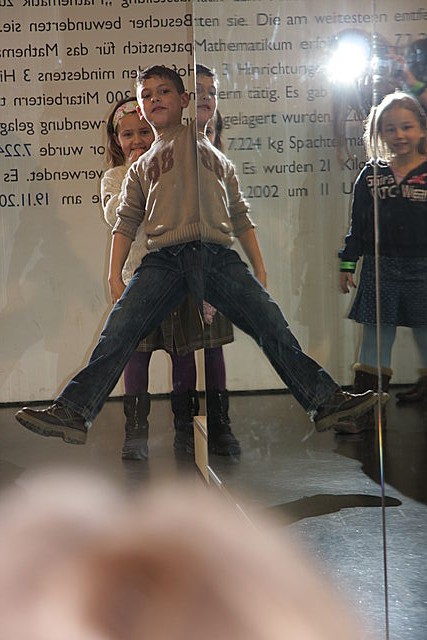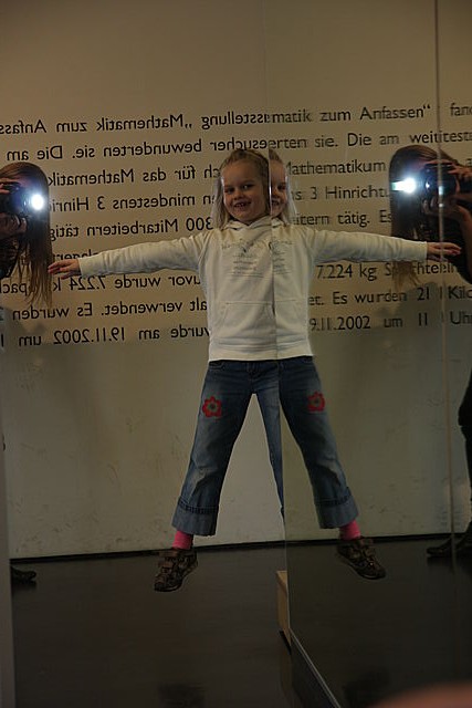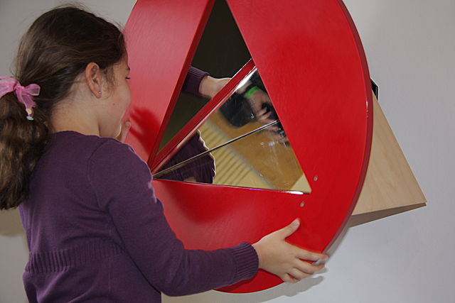 Ein Blick in die Unendlichkeit! Um in das Riesenkaleidoskop zu kommen, musst du dich tief bücken. Dann aber entdeckst du unendlich viele Spiegelbilder von dir.