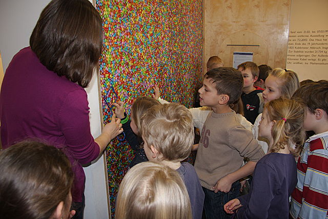 Ein Bild mit vielen bunten Smarties macht nicht nur Appetit sondern auch neugierig. Wie viele sind es? Mit Hilfe eines kleines Metallrahmens kann man die ungefähre Menge ganz gut bestimmen.