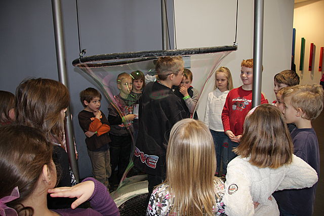 Bei der Riesenseifenhaut bildet sich immer eine Schlange von Kindern. Es ist aber auch faszinierend. Von außen sieht es fantastisch aus, und von innen ist es ein großartiges Gefühl.