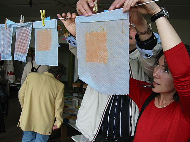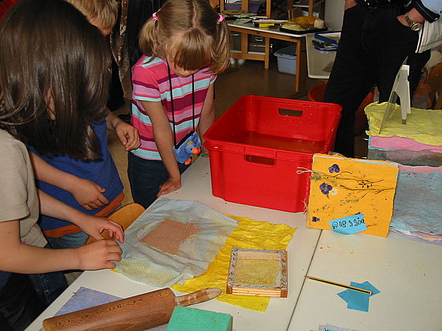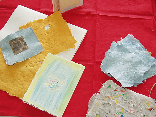 Wir lernten: - wie Papier hergestellt wird, -Papier selbst zu schöpfen, - bunte Collagen aus eigenem Papier herzustellen, - Briefpapier herzustellen, ...