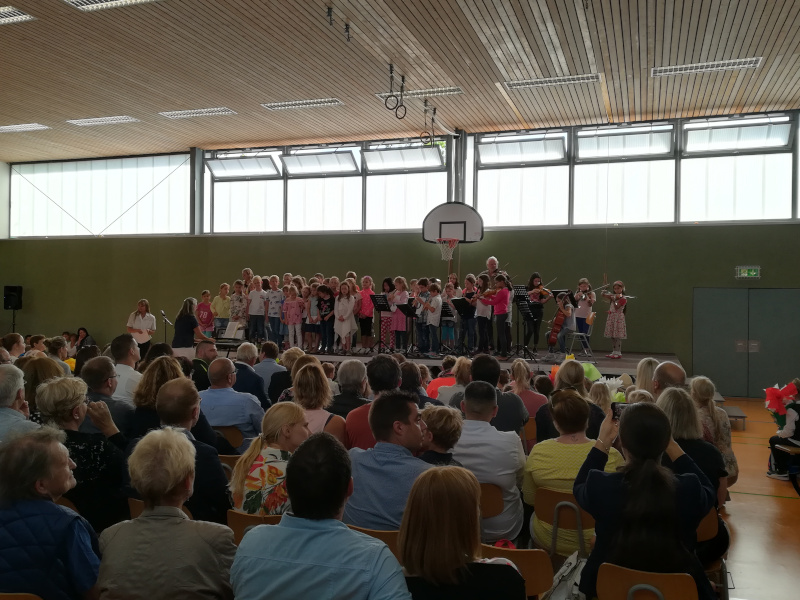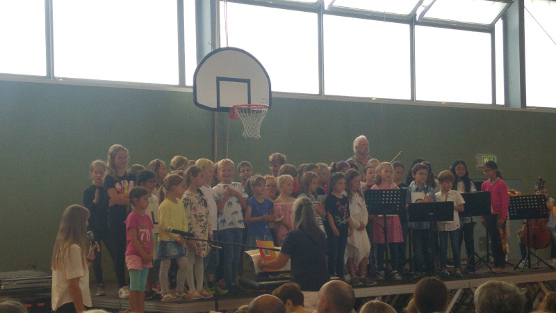 Die Einschulungsfeier gestalteten die Klasse 2c, der Chor und das Streicherensemble mit. Die Kindertagesstätten "Burg Schlotterstein" und "Emmausgemeinde Jügesheim" wünschten den Erstklässlern viel Spaß in der Schule.