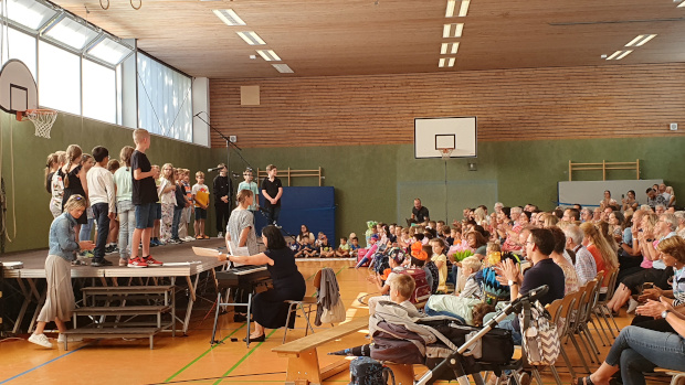 Am 5. September 2023 begrüßten wir um 10:00 Uhr und um 11:00 Uhr unsere neuen Schülerinnen und Schüler mit Feierlichkeiten in der Turnhalle mit Vorträgen der Jahrgangsstufen 2, 3 und 4 ...