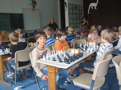 Am 19.6.09 fand in der Otto-Hahn-Schule ein Schulschach-Turnier statt, an dem rund 60 Schüler im Alter von 7 bis 12 Jahren teilnahmen. Unter der Leitung ihrer Trainer, Dr. Rudolf Benninger vom SC Heusenstamm und Dr. Alfred Lang vom SC Rödermark, trat eine Auswahl der Rodgauer-Grundschulen (Carl-Orff-Schule, Wilhelm-Busch-Schule und Freiherr-vom-Stein-Schule) in 4 Runden mit jeweils 15 Minuten Bedenkzeit gegen die Ott-Hahn-Schule an.