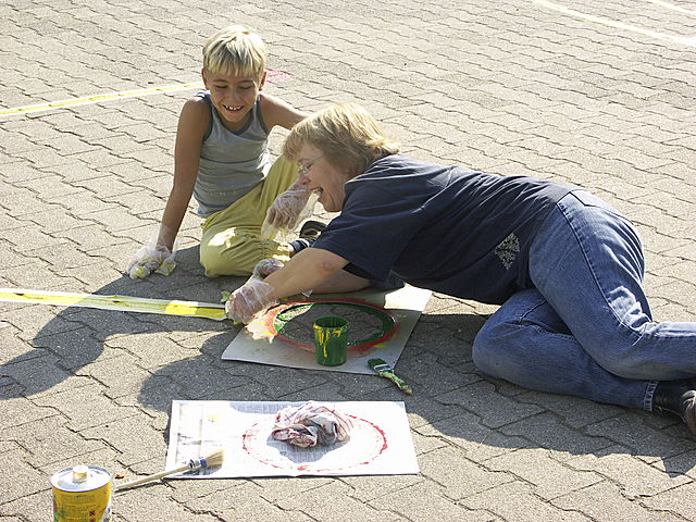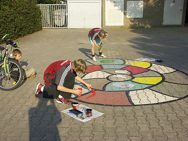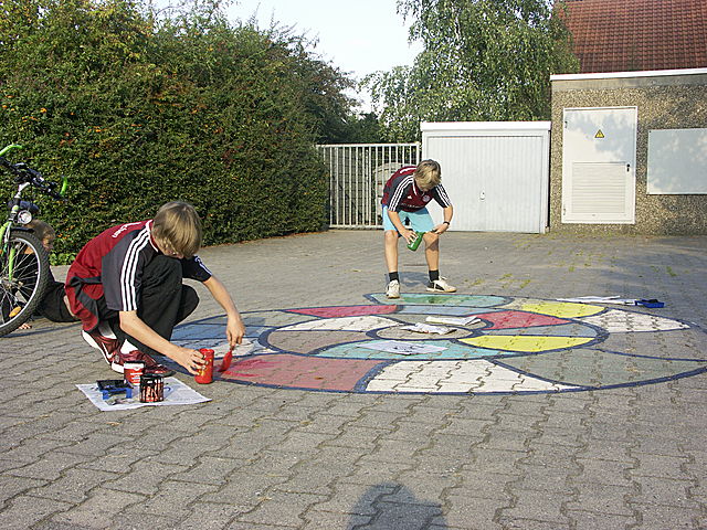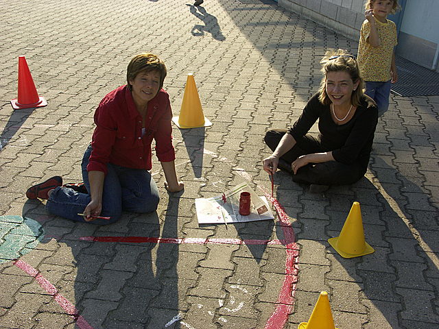 Am 23. und 24. September 2005 halfen Eltern, Lehrer und Kinder beim Bemalen des Schulhofes, Abdichten des Containerdaches und anbringen der Korkleisten im Schulgebäude. Bei schönem Wetter machten die Arbeiten sogar Spaß. Der Förderverein stellte die finaziellen Mittel. Einige Mütter sorgten für die Stärkung zwischendurch.