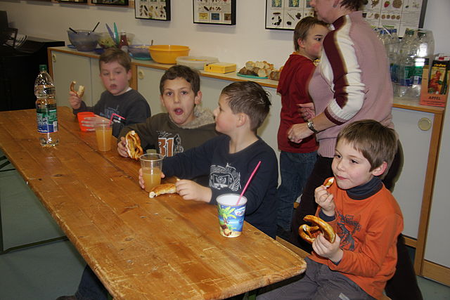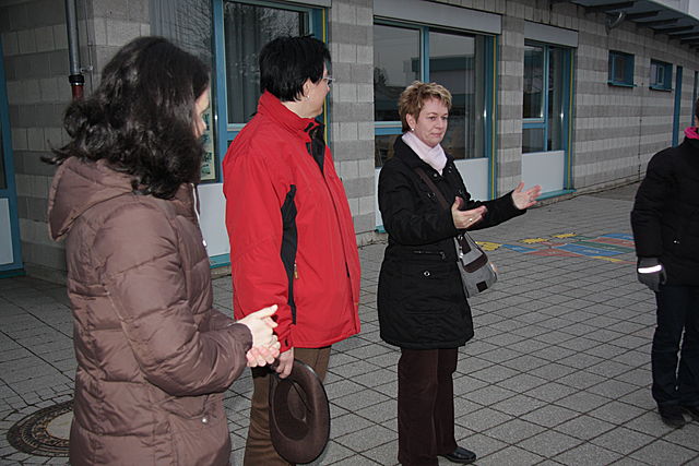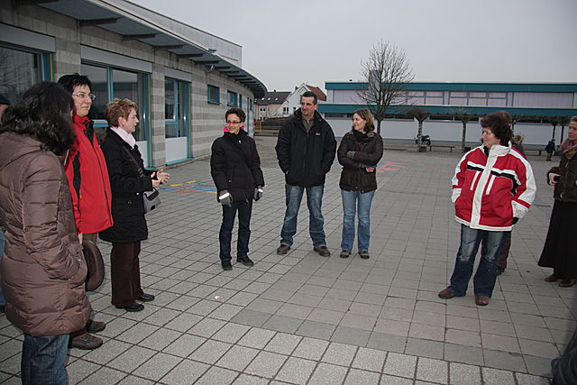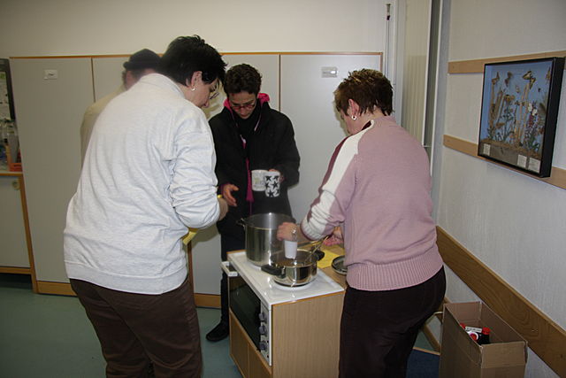 Aufwärmen in der Schule bei Glühwein und Grillwürstchen