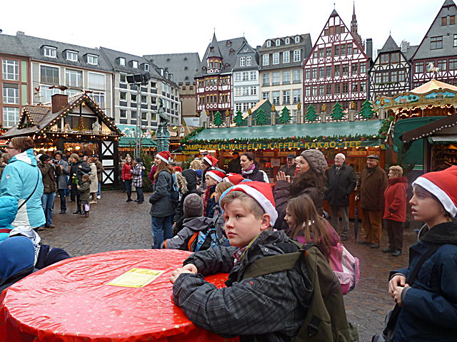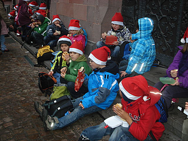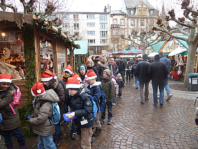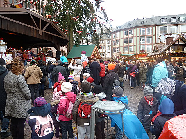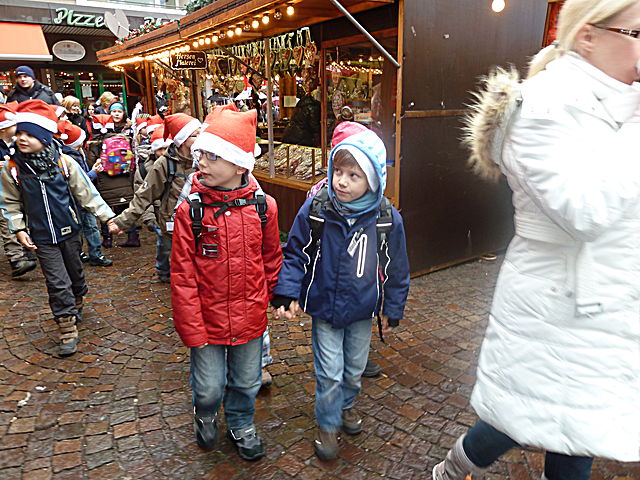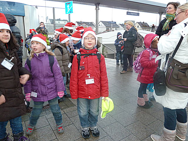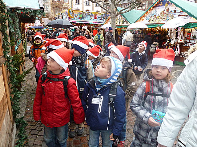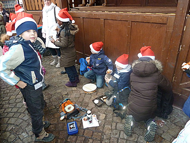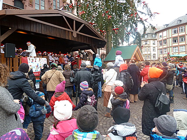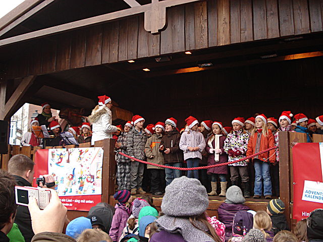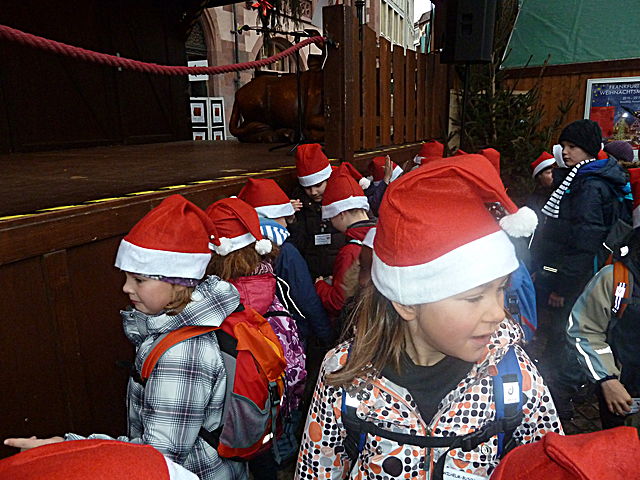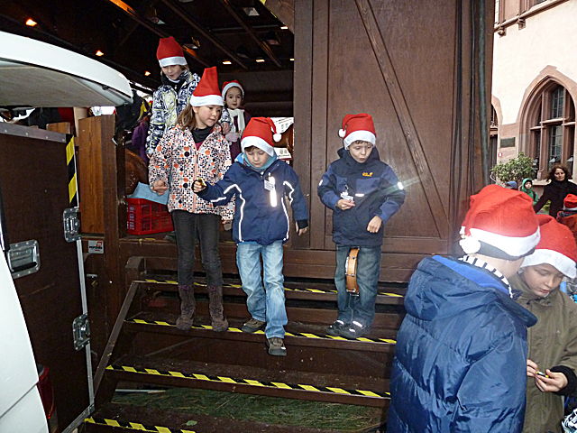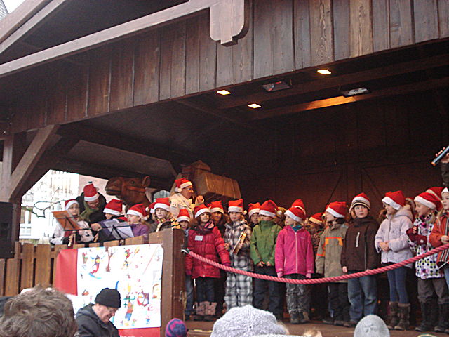 Am 14.12. erlebten die Kinder der 2. Klassen der Wilhelm-Busch-Schule ein besonderes Weihnachtsereignis: Sie durften auf der Bühne des Frankfurter Weihnachtsmarktes ihr gesangliches und musikalisches Talent zum Besten geben. Im Rahmen der zweijährigen primacanta-Fortbildung an der Schule, bei der es um das Schaffen musischer Basiskompetenzen bei den Schülern geht, wurden die Kinder eingeladen, 3 Weihnachtslieder vorzusingen und zu flöten. Besonderes Highlight war das englischsprachige Gospel ‚Good news’. Mit viel Freude und Engagement übten die Schülerinnen und Schüler nicht nur den englischen Text, sondern auch eine dazu passende Choreografie. Das beschwingte auch den letzten Zuschauer zum Mitklatschen und Mitsingen.